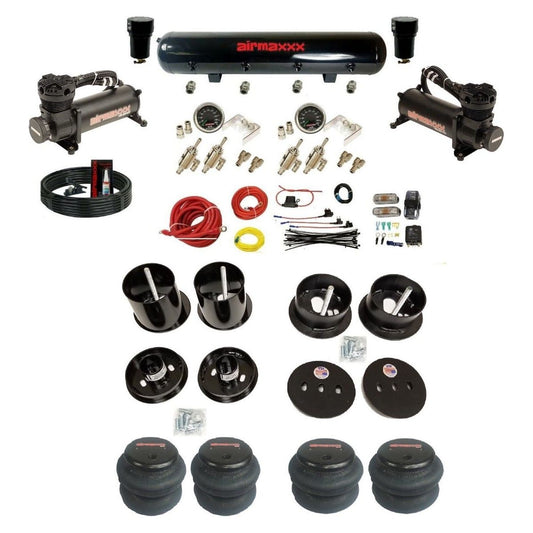 airmaxxx 3/8" FastBag Air Ride Kit w/Black 480 Compressors Fits 1963-64 Cadillac