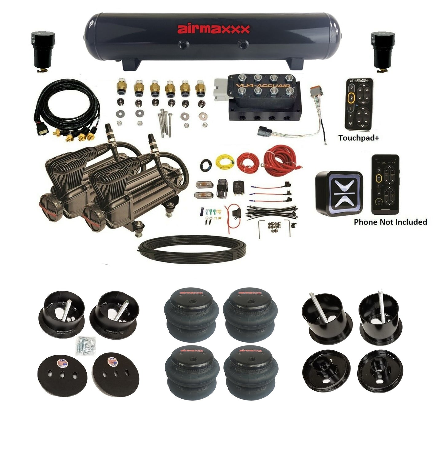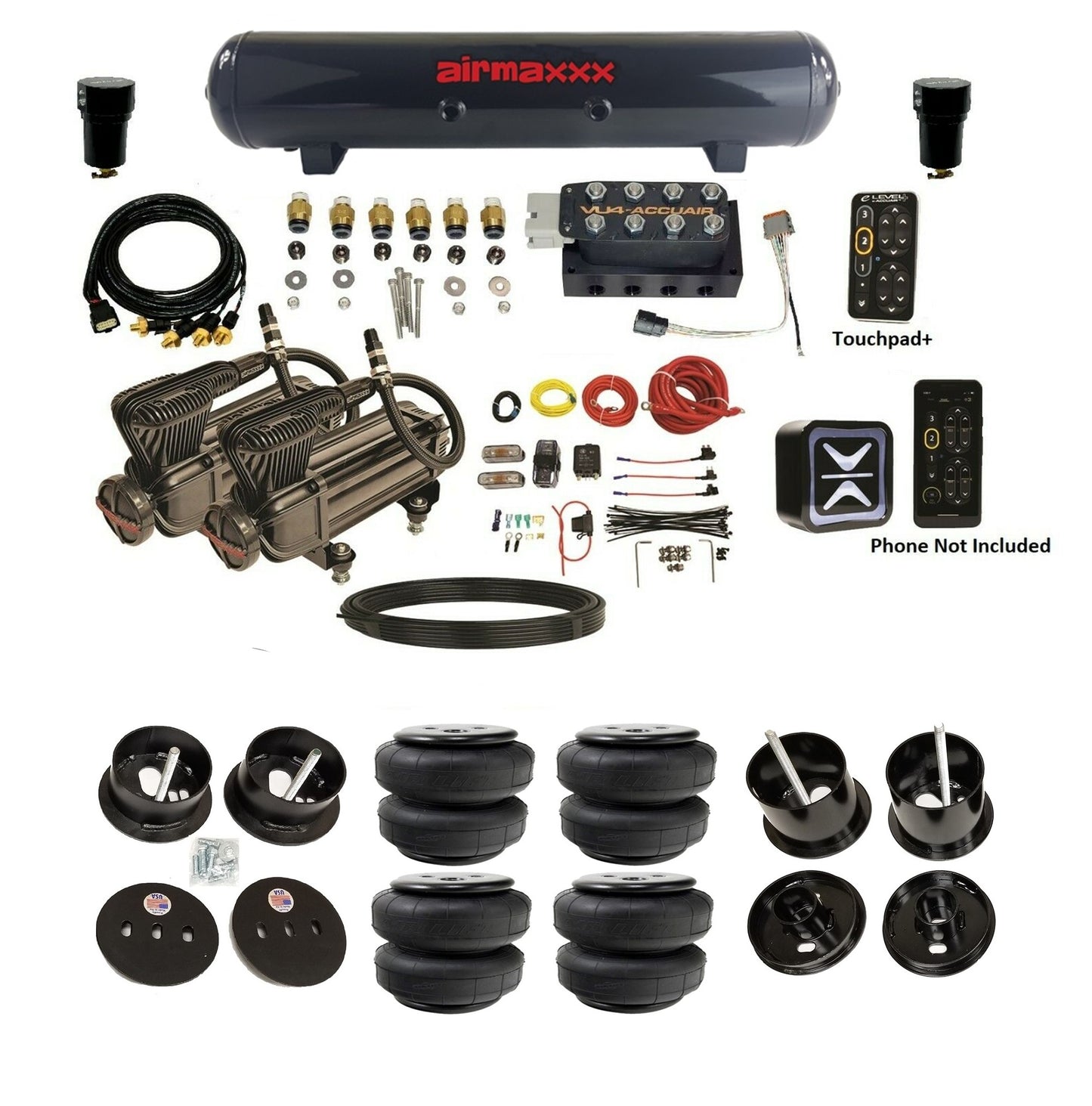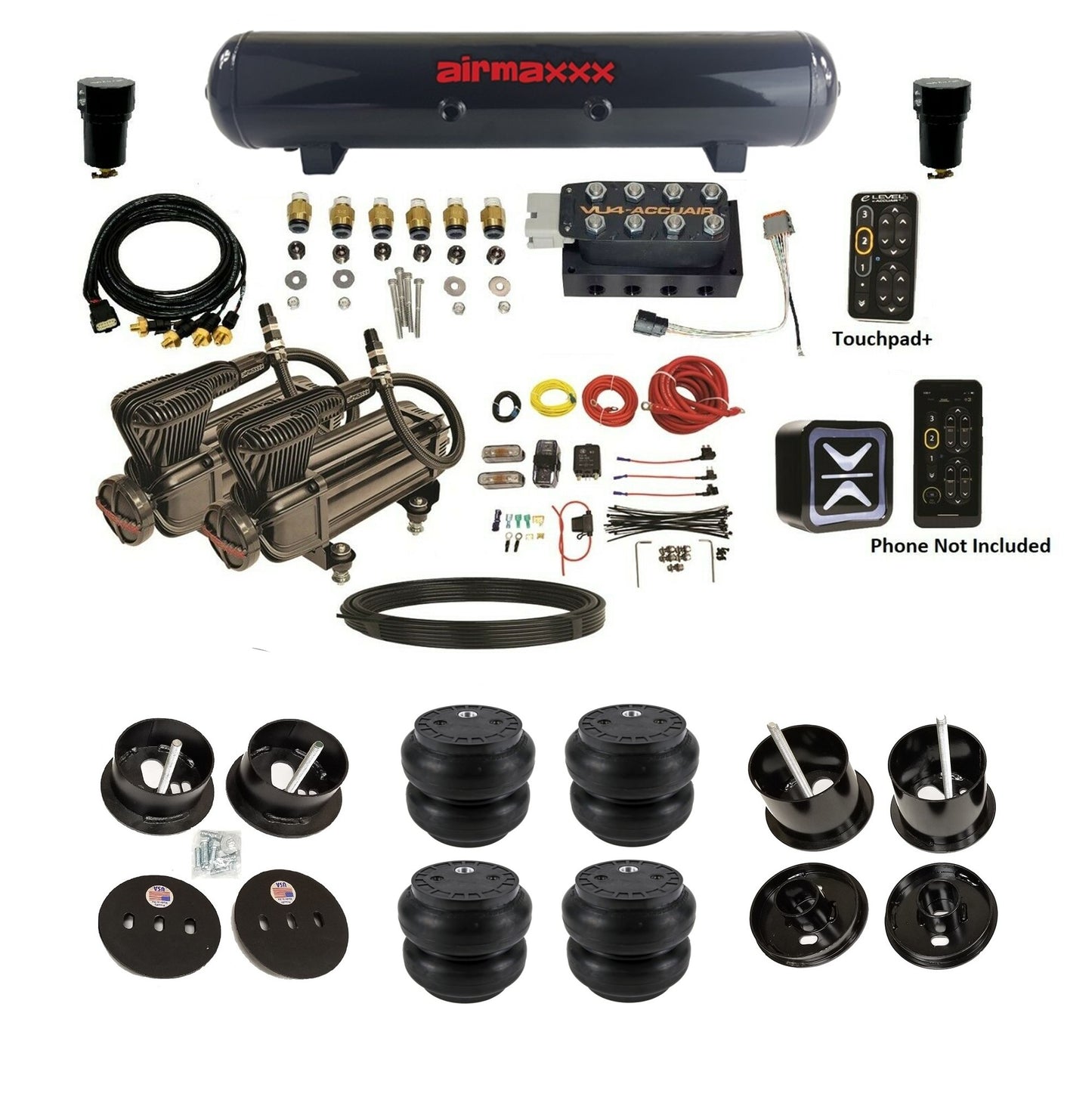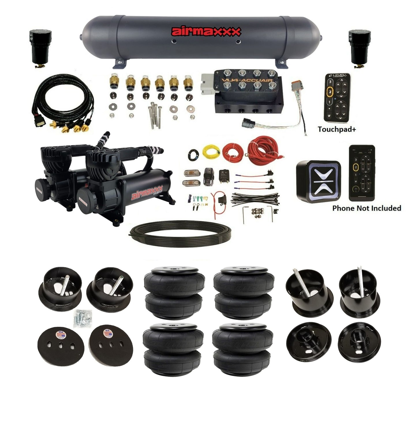 Wireless + TouchPad+ Control: Operate your suspension via the included TouchPad+ or the AccuAir mobile app