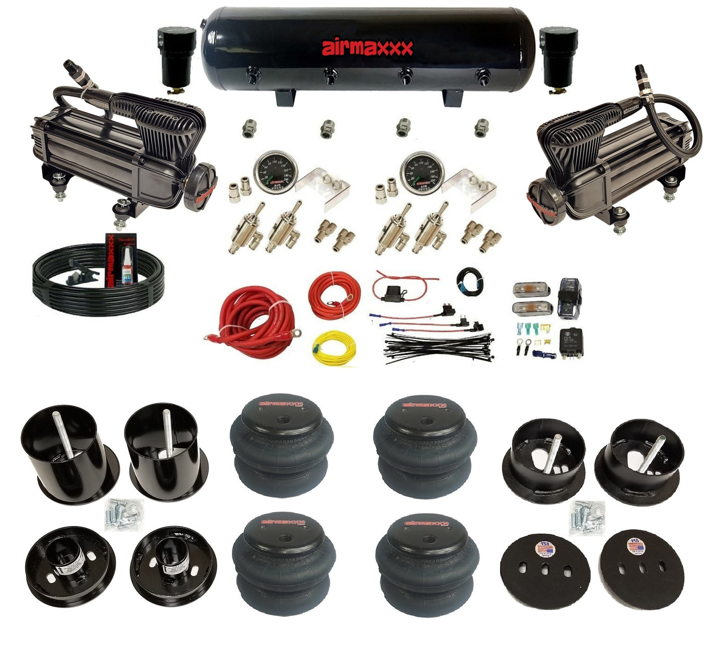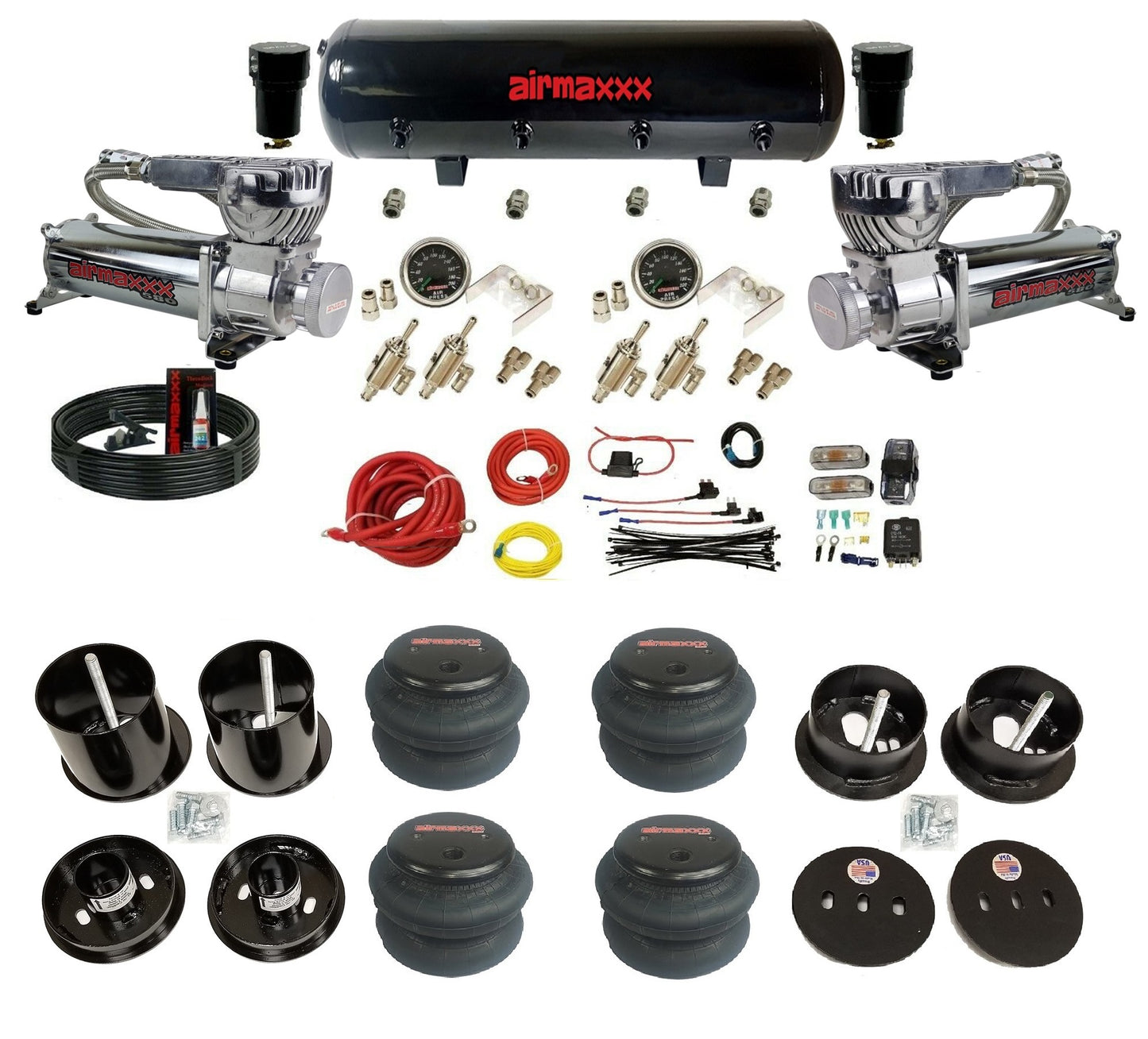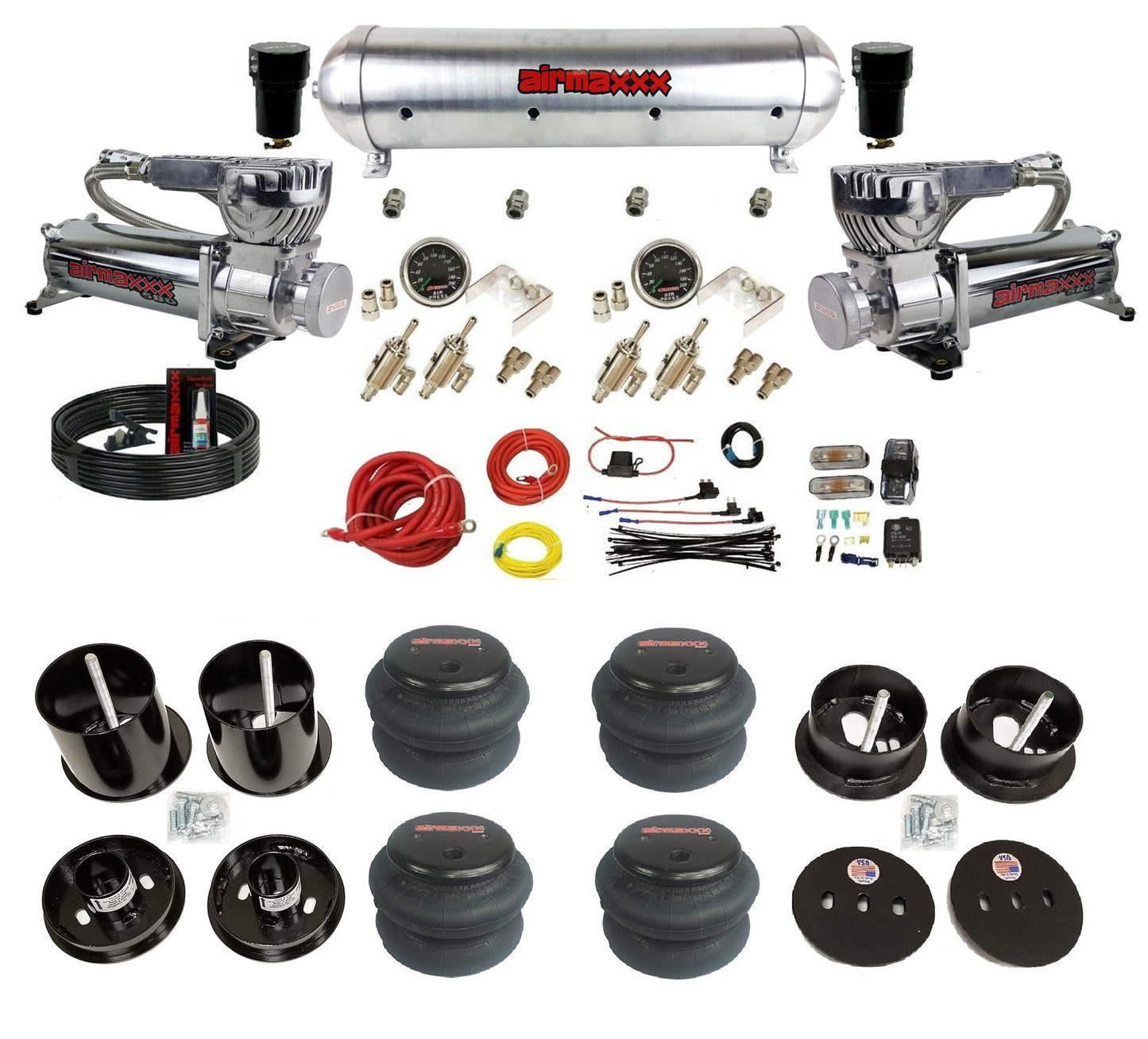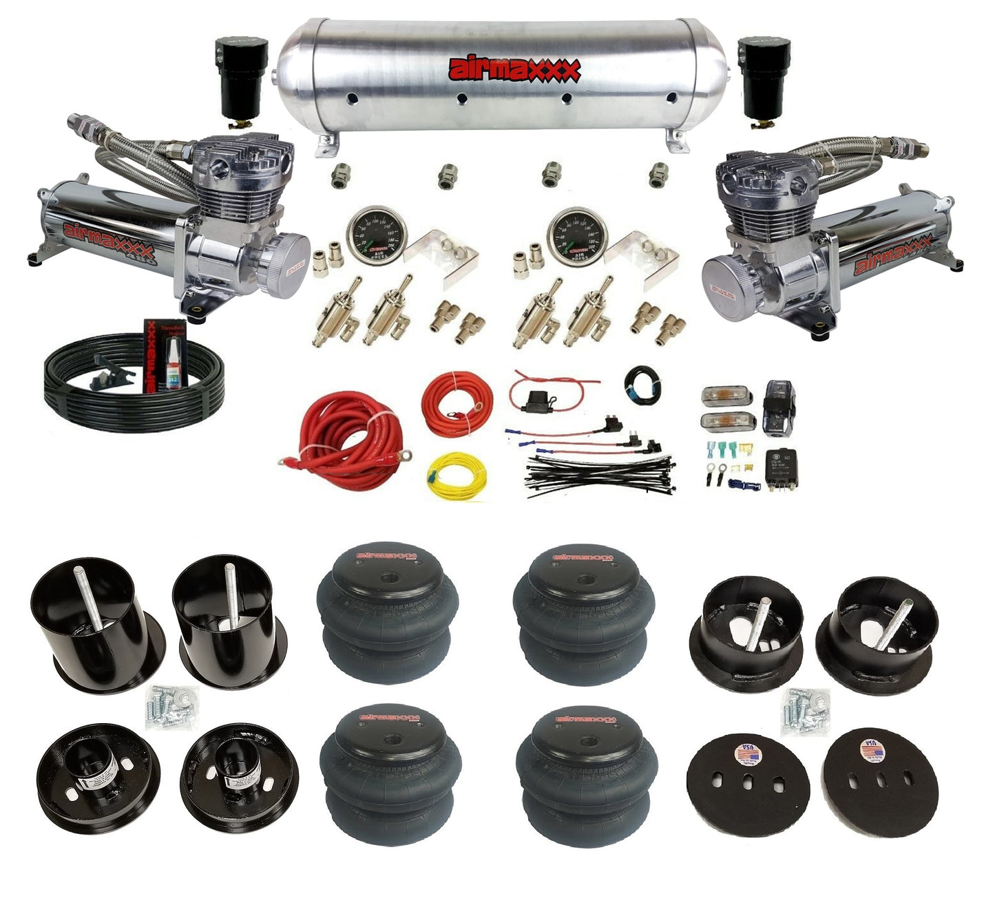 Upgrade your 1963–1964 Cadillac with the airmaxxx Manual 3/8" Air Suspension Kit, powered by dual Chrome 480 compressors for reliable air delivery and show-quality looks. Designed for DeVille, Fleetwood, Series 62, Series 75, and Eldorado RWD models, this kit gives you true four-corner manual control for complete suspension tuning.
