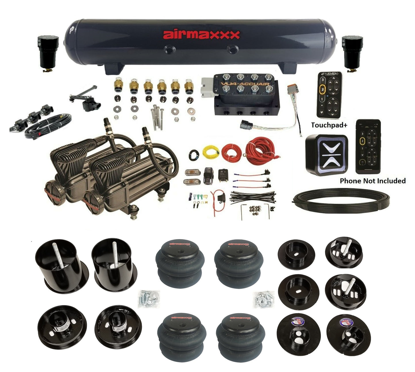 With the dual black airmaxxx 580 compressors, seamless aluminum air tank, and Accuair’s advanced E-Level+ technology, you’ll experience fast response, reliable operation, and unmatched control—all from your smartphone or Touchpad+.