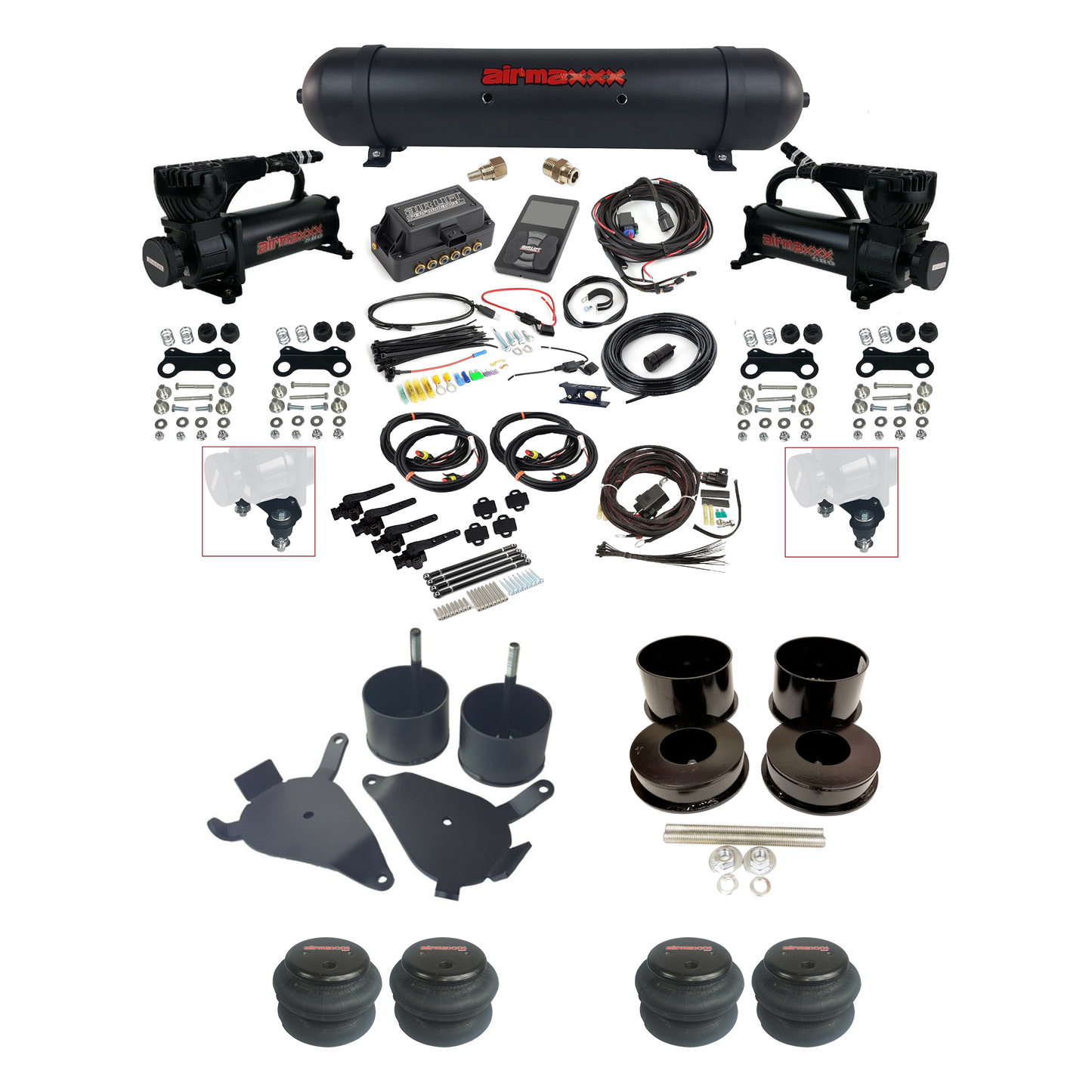 • Dual Black 580 Compressors – airmaxxx heavy-duty units deliver reliable, quiet air-up performance