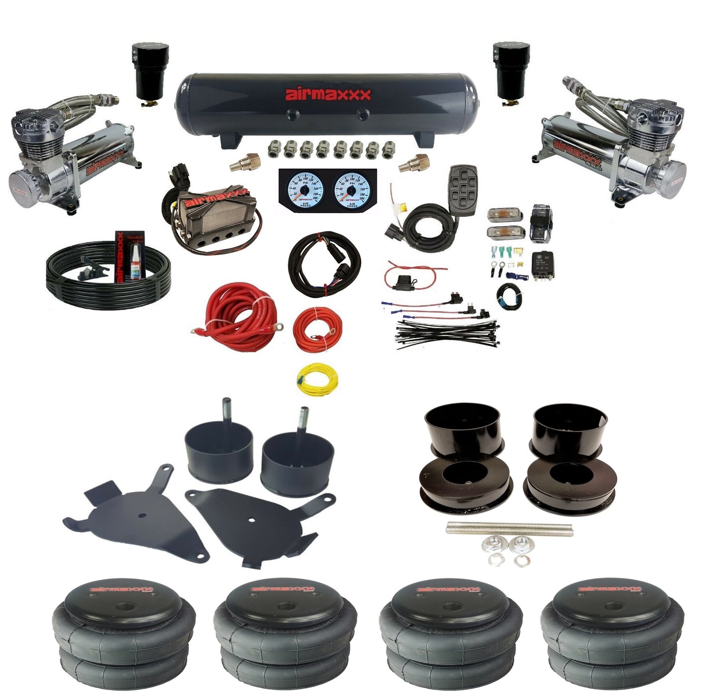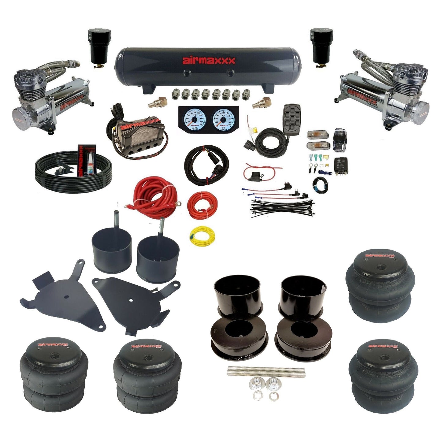 With dual chrome 480 compressors, a 5-gallon 7-port steel tank, and a 3/8" valve manifold, this all-in-one system delivers quick air-up times, reliable pressure, and everything needed for a clean installation.
