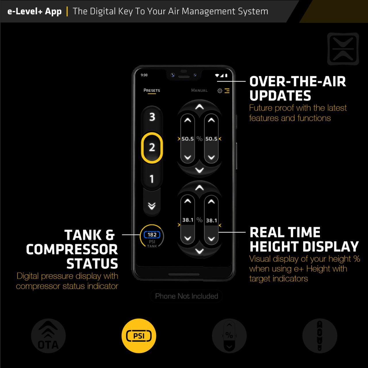 - Full control through the AccuAir e-Level+ App (iOS & Android)