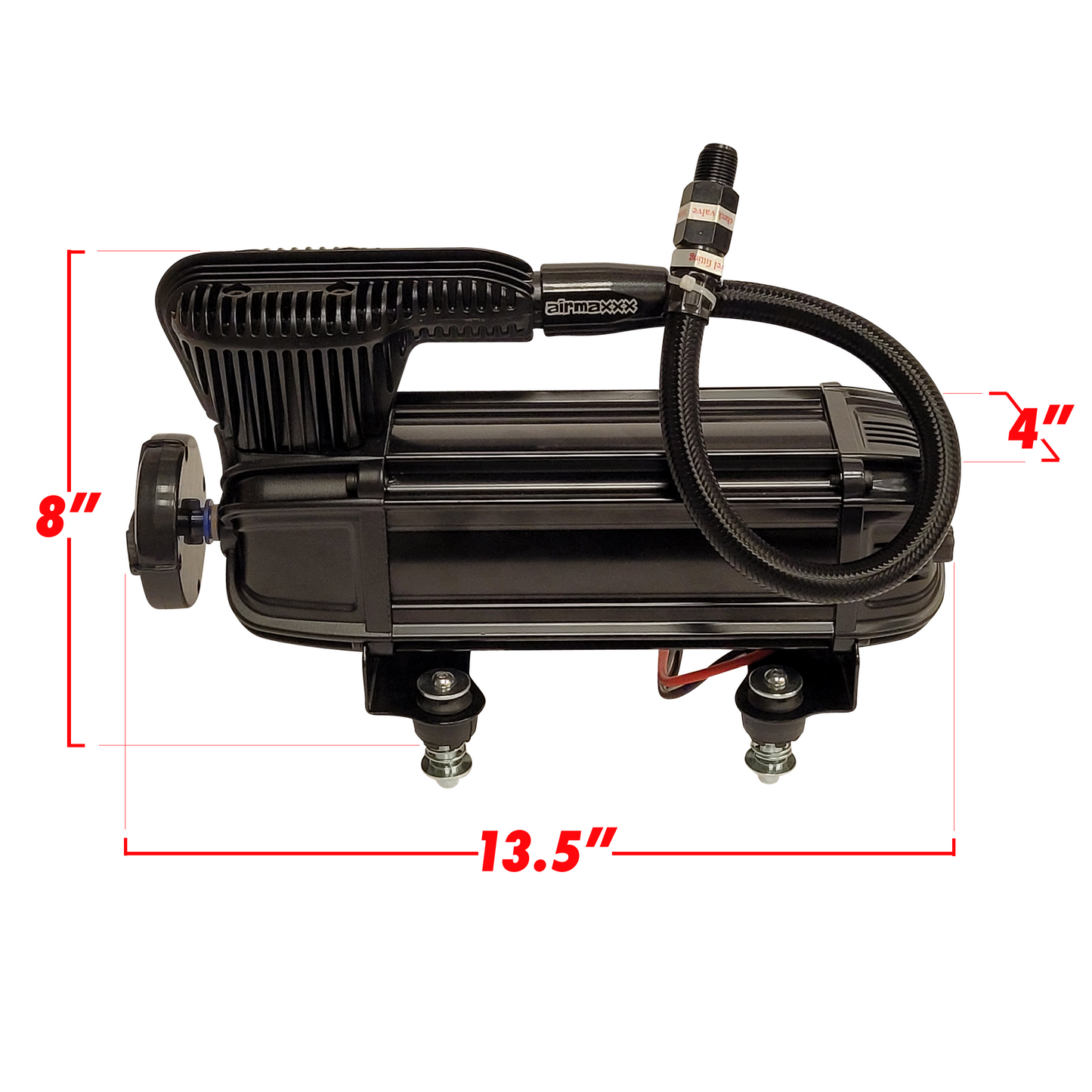 Dual airmaxxx X-Series Compressors: Rapid fill times and quiet operation with isolator mounts for reduced vibration.