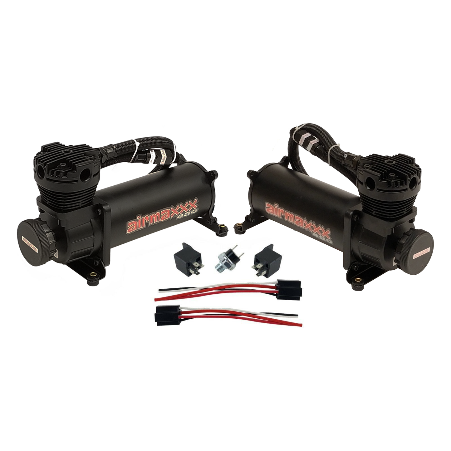 Get serious onboard air power with the airmaxxx Black 480 Air Compressor Dual Pack. Built for high-demand systems, this dual compressor setup delivers fast fills, reliable pressure, and a sleek black finish for a clean, understated look.