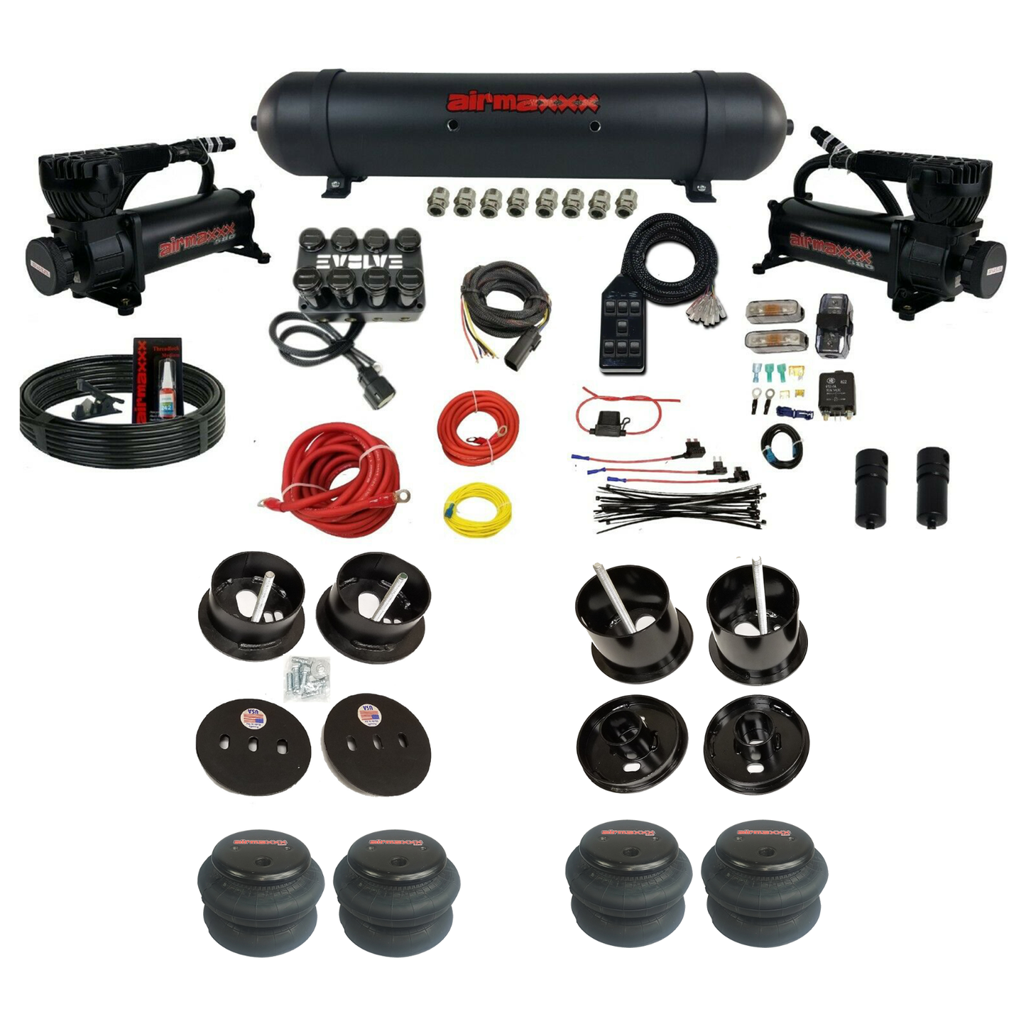 (4) airmaxxx 2600 ½" NPT Port Air Bags