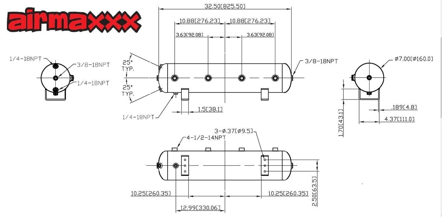 airmaxxx Black 5-Gallon 9-Port Steel Tank