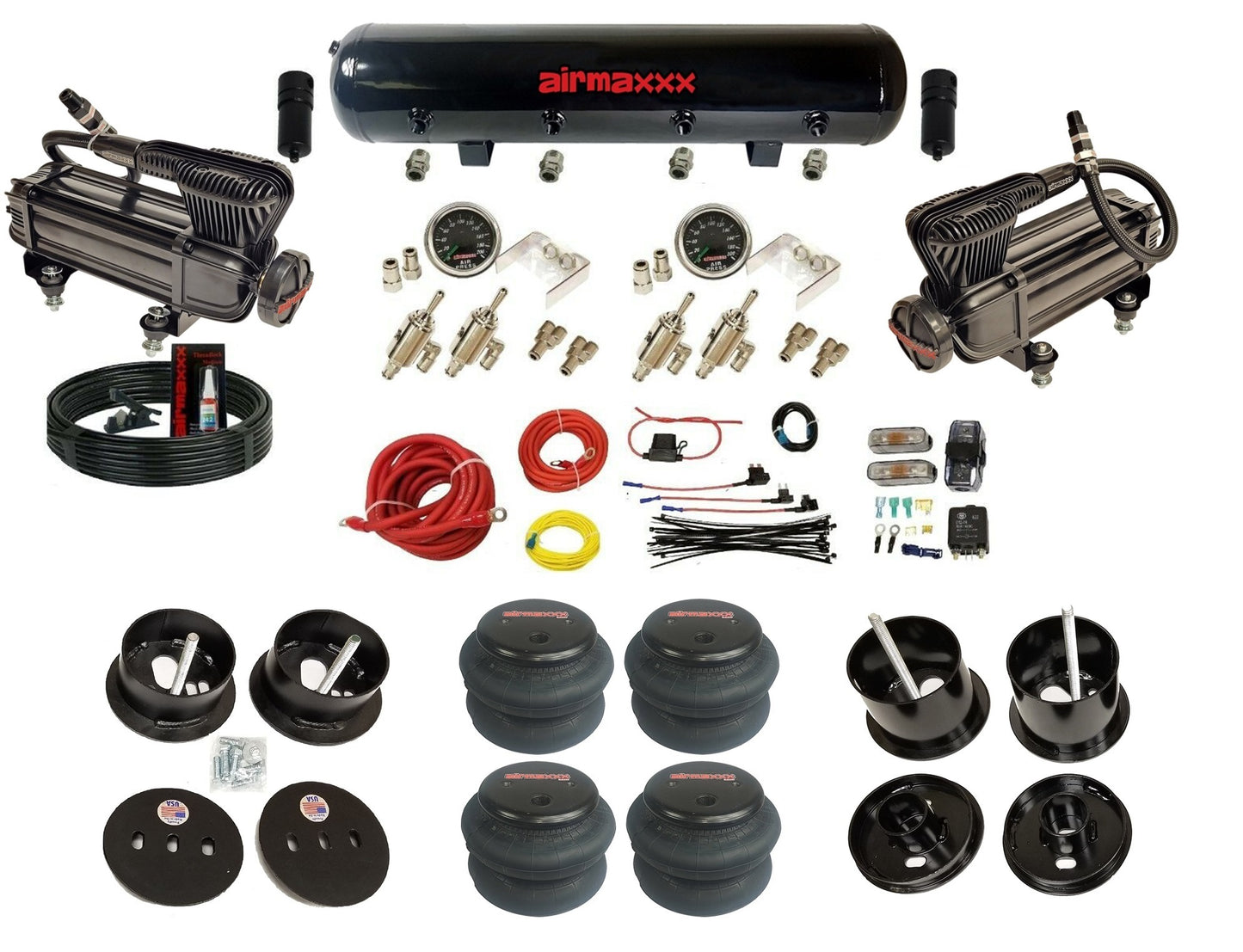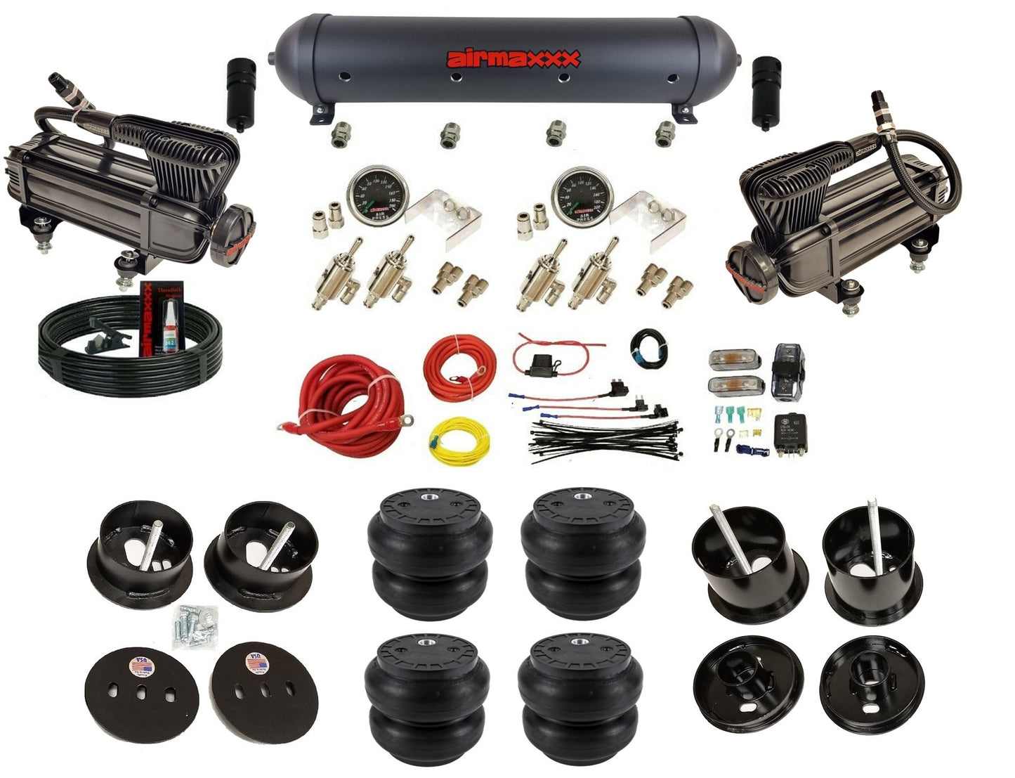 airmaxxx Black 3/8" Manual Air Ride Kit DLOE Valves Fits 1961–1962 DeVille