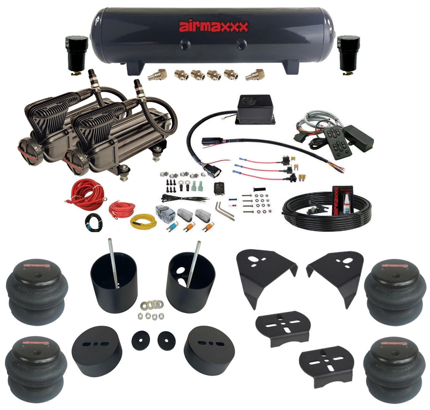 • (4) airmaxxx 2600 ½" NPT port air bags