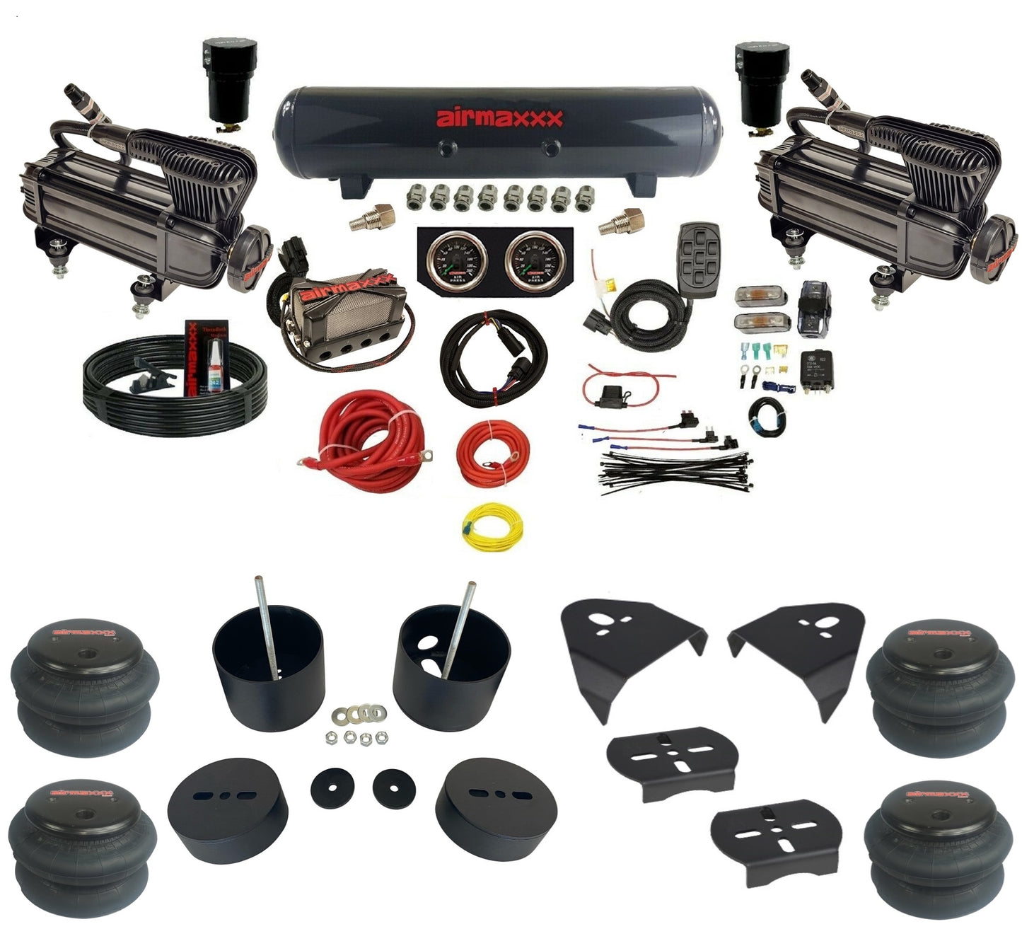 Take your 1999–2006 Chevy Silverado 1500 2WD or GMC Sierra 1500 2WD to the next level with the airmaxxx Complete 3/8" Air Suspension Kit. This all-in-one system includes everything you need to install full 4-corner air ride management — from air bags and brackets to compressors, tank, fittings, and gauges.