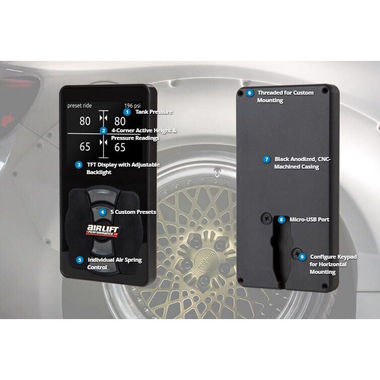 5 Custom Pressure Presets: Quickly switch between saved ride heights for daily driving or show stance.