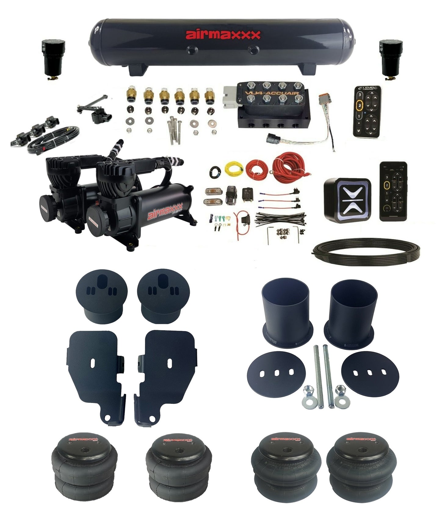 Upgrade your 1965β1970 Chevy Impala with the airslamit Complete Package, featuring AccuAirβs e-Level+ system paired with the fastest X-Series Compressors by airmaxxx β‘.