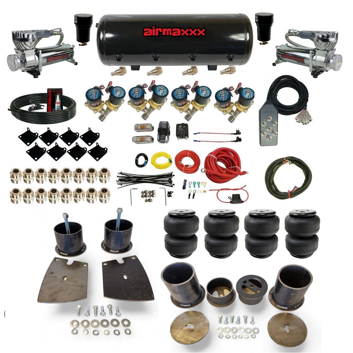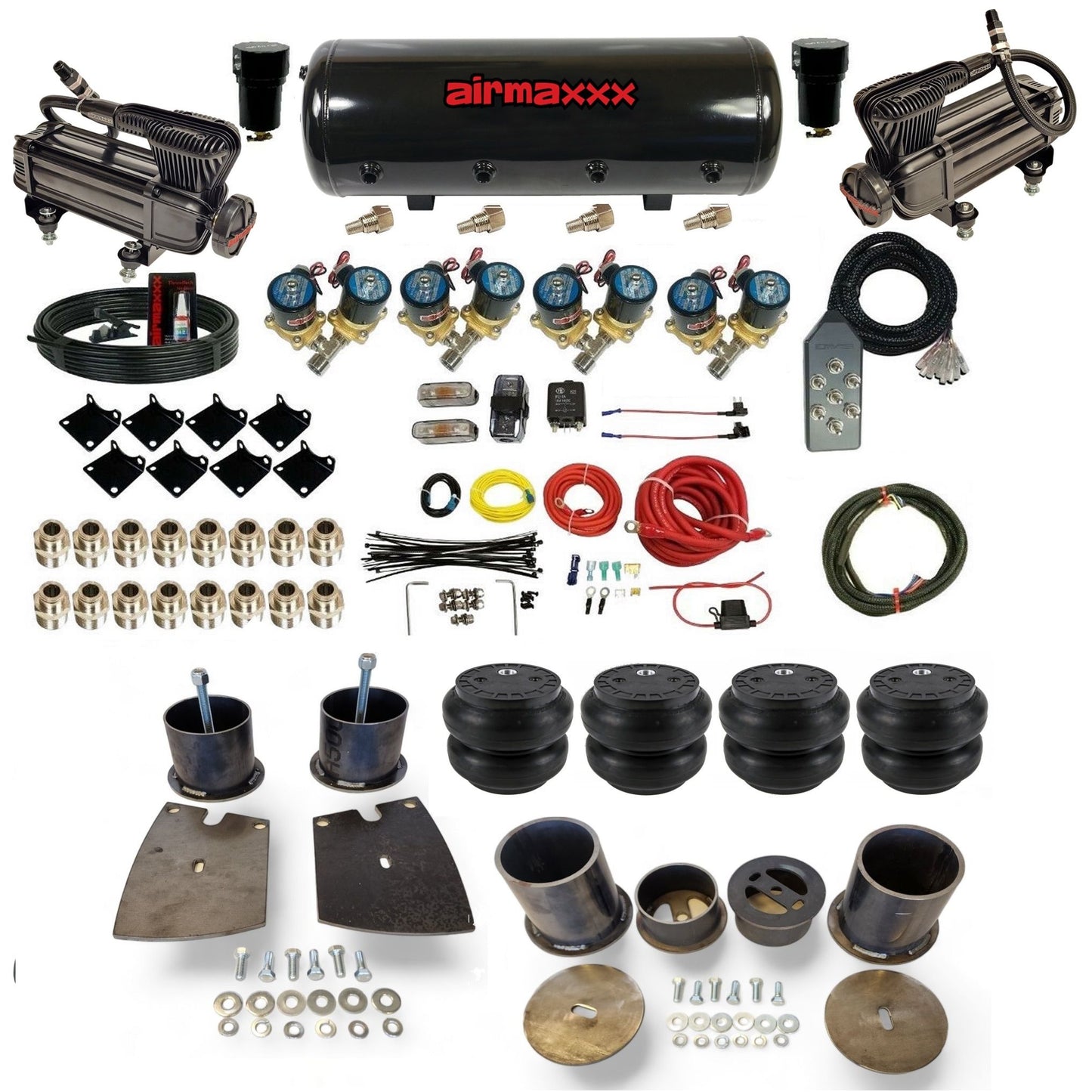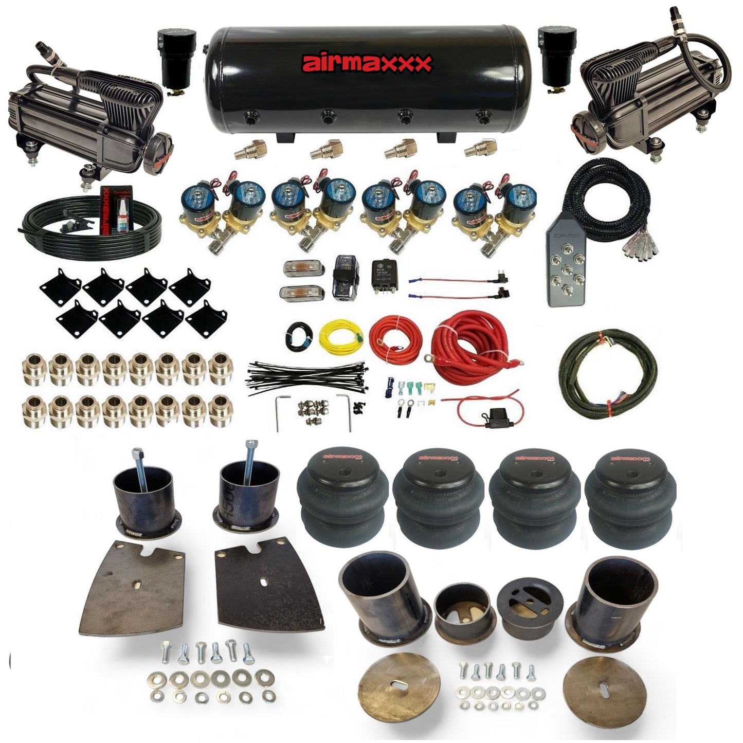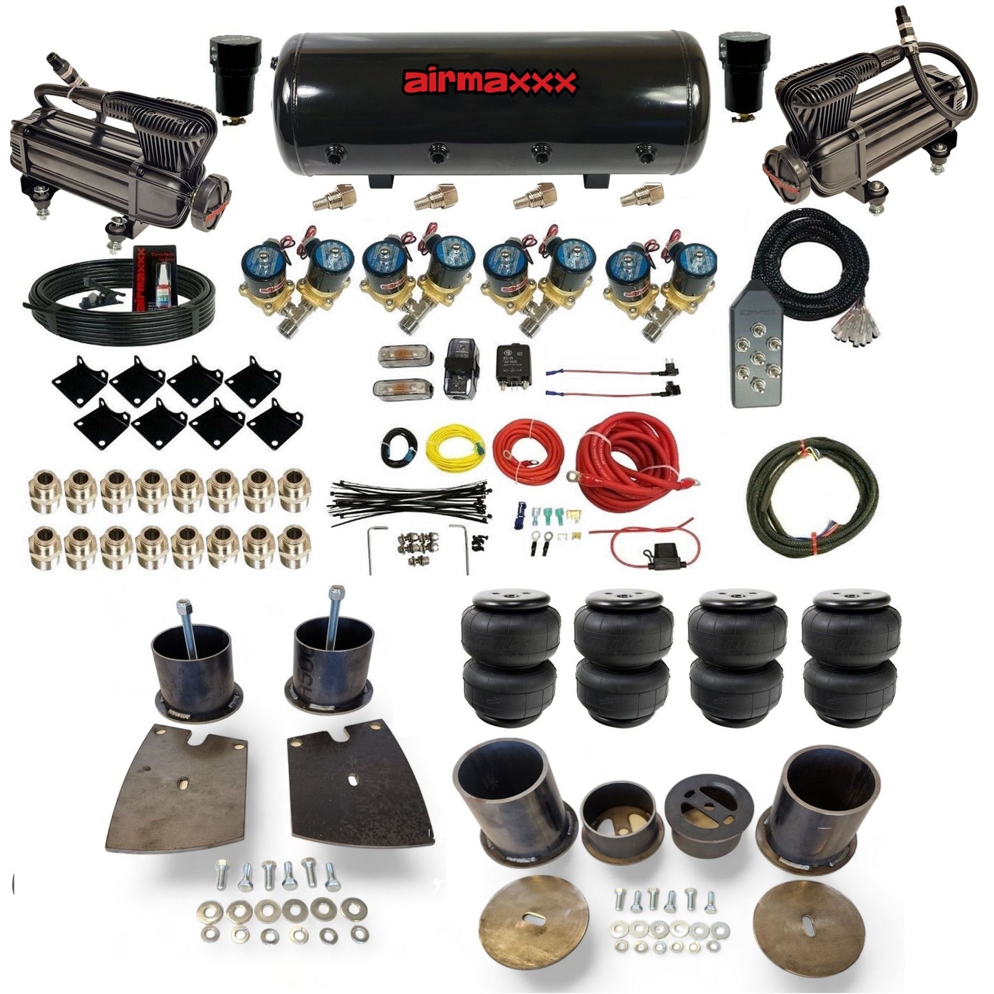- Air Bag Mounts: airmaxxx Front Bolt on Air Bag Cups and airmaxxx Rear Bolt on Air Bag Mounts for secure and straightforward installation.