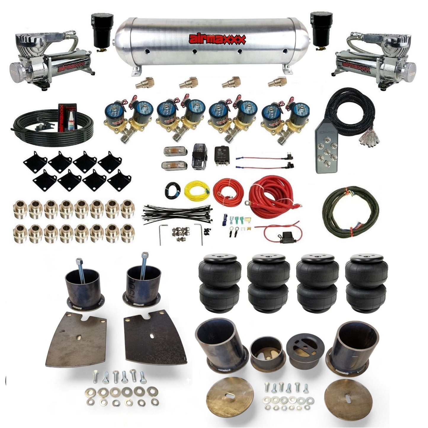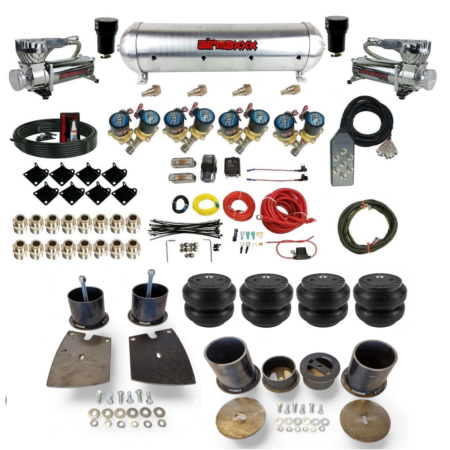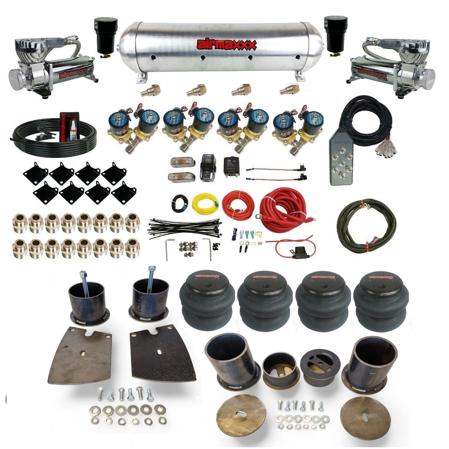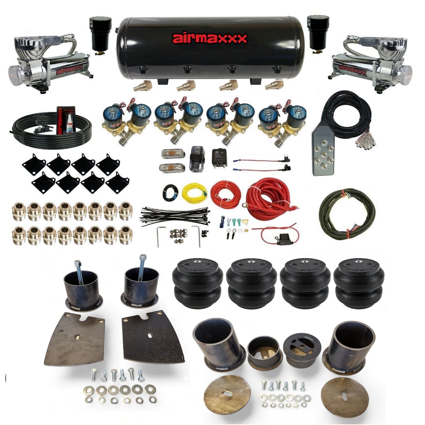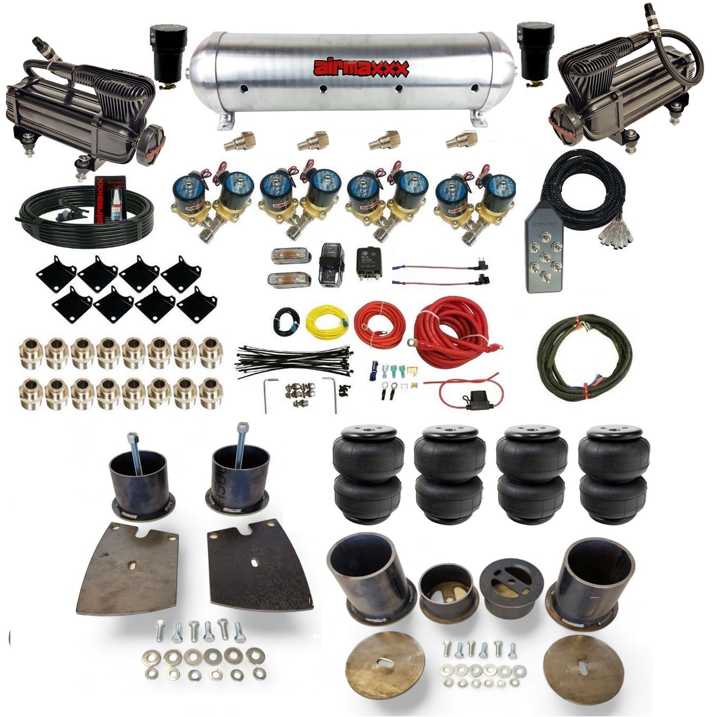 - Air Bag Mounts: airmaxxx Front Bolt on Air Bag Cups and airmaxxx Rear Bolt on Air Bag Mounts for secure and straightforward installation.