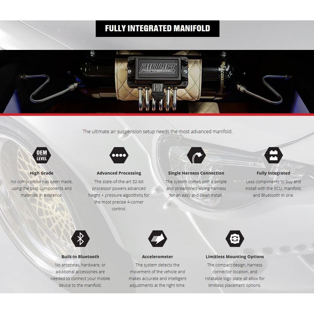 Fully Integrated Manifold: Compact, all-in-one Air Lift manifold for simplified wiring and plumbing.