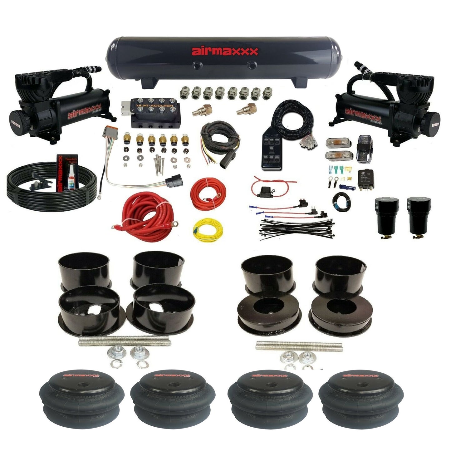 (4) airmaxxx 2600 ½"NPT Port Air Bags